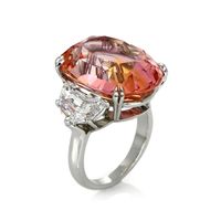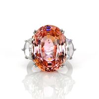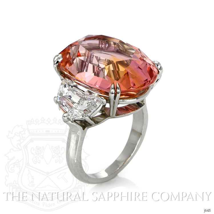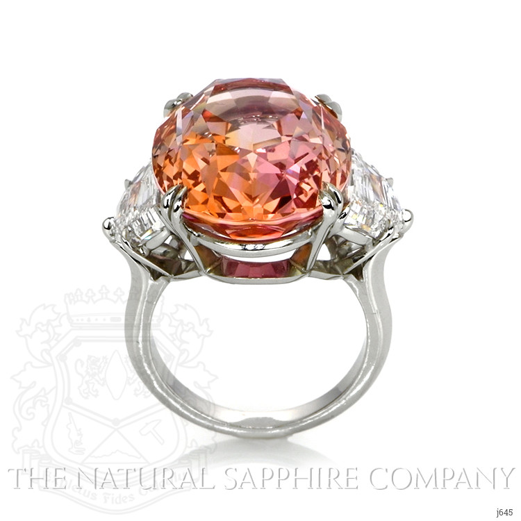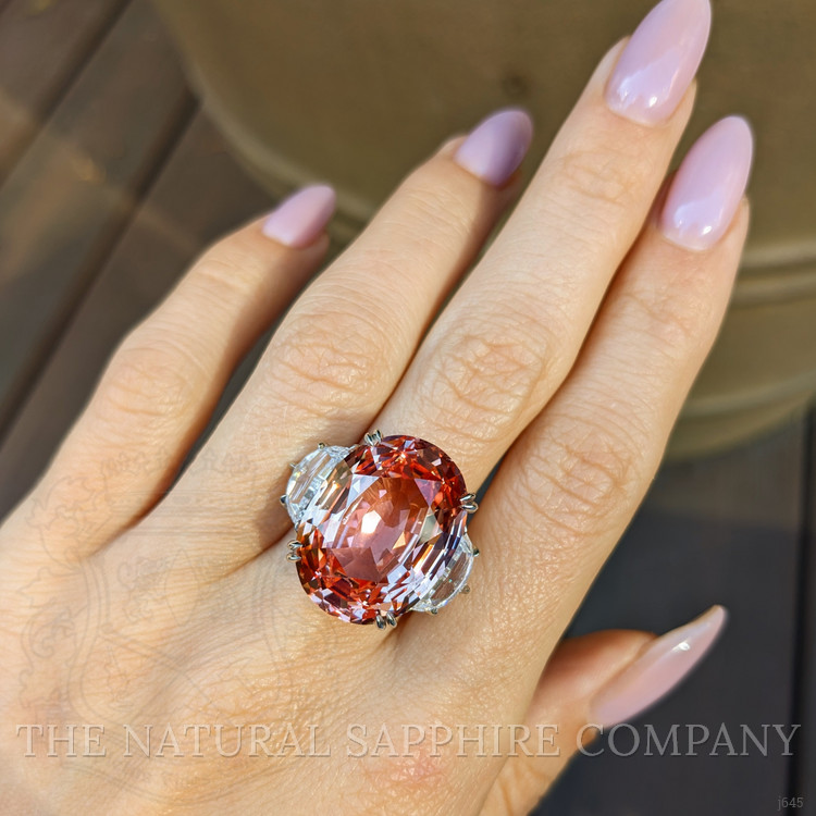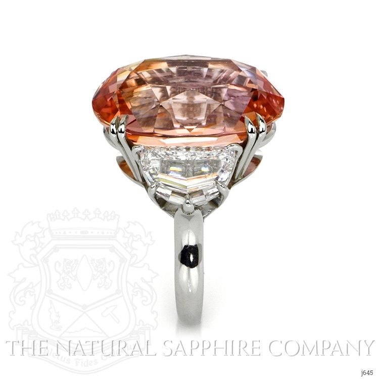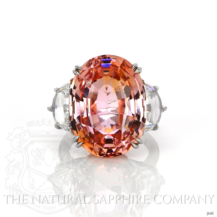 28.85 Ct. Padparadscha Sapphire and Natural Diamond Three Stone Ring, Platinum 950