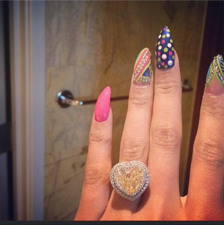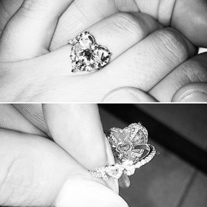 Rap’s reigning queen Nicki Minaj is the latest celebrity to feel the love for the heart shape. On April 15th, she posted a photo of her left hand, showing off a stunning heart-shaped yellow diamond ring surrounded by a double halo of colorless diamonds. This Instagram photo sparked rumors that her boyfriend Meek Mill proposed to her.