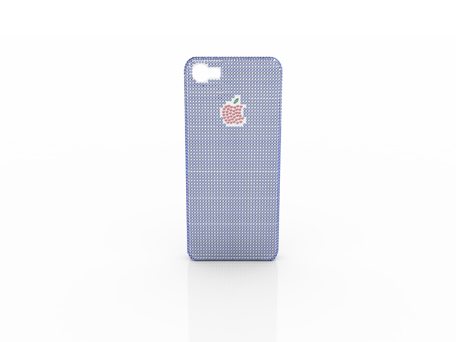 For the distinguished purchaser and one who appreciates the truly finer things life, not to mention for the one who wishes to remain unique among the masses; our case for the iPhone 5 is exquisitely crafted of 18kt white gold and set with 2,830 natural blue Ceylon sapphires, totaling 169.8 carats. The Apple logo is set with 38 exceptionally colored natural rubies totaling 2.28 carats, and the Apple’s leaf is a single marquise cut natural green sapphire. Total cost for this amazing case? $100,000