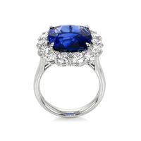 Introducing an exquisite creation from The Natural Sapphire Company, a testament to our commitment to elegance and excellence in craftsmanship. The centerpiece of this luxurious ring is a GRS certified blue sapphire of remarkable quality, exuding a captivating allure that is synonymous with its Ceylon (Sri Lanka) origin, famed for producing some of the world’s finest sapphires. This transparent 12.04 carat gem is skillfully crafted in a cushion shape with dimensions of 14.25 x 12.07 x 8.80 mm, showcasing an expert mixed brilliant cut that maximizes its brilliance and light performance.