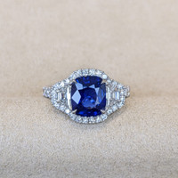 What sets this gemstone apart is not merely its extraordinary hue but its light interplay—contrast this with the classic round cut which gently diffuses light, or the emerald cut known for its "hall of mirrors" effect. Our sapphire ring overcomes these conventions, refracting light with an intensity that is simultaneously vivid yet sophisticated, offering a clarity that speaks of noble taste and timeless elegance. This precious stone, through its masterful cut, shines with a distinctive light performance, enchanting onlookers with its iridescent display that effectively sets it apart from other gemstones and shapes.