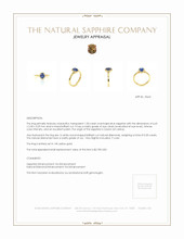 Inside you will find well organized reporting to include appraisal, identification and gem faceting grade reports. Special care literature on how to clean your sapphire or jewelry is included as well.