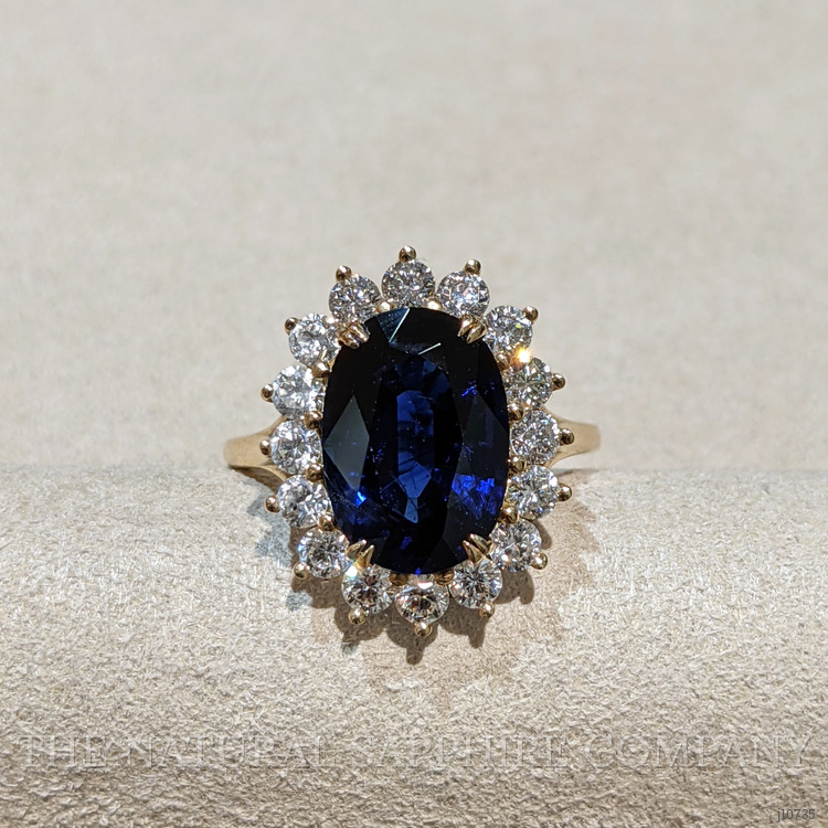 Unlike ordinary gold rings, this piece features a breathtakingly deep blue sapphire, encircled by meticulously arranged diamonds. This central gemstone, renowned across cultures for its associations with realization and truth, becomes a tangible representation of romance and commitment. While alternative designs might rely on elaborate settings or intricate designs, the simplicity of our design is its strength, allowing the wearer to fully appreciate the sincerity and passion encapsulated within. The contrast of the soothing blue against the radiance of 14K yellow gold creates a harmony that is echoed in the most tender of relationships.