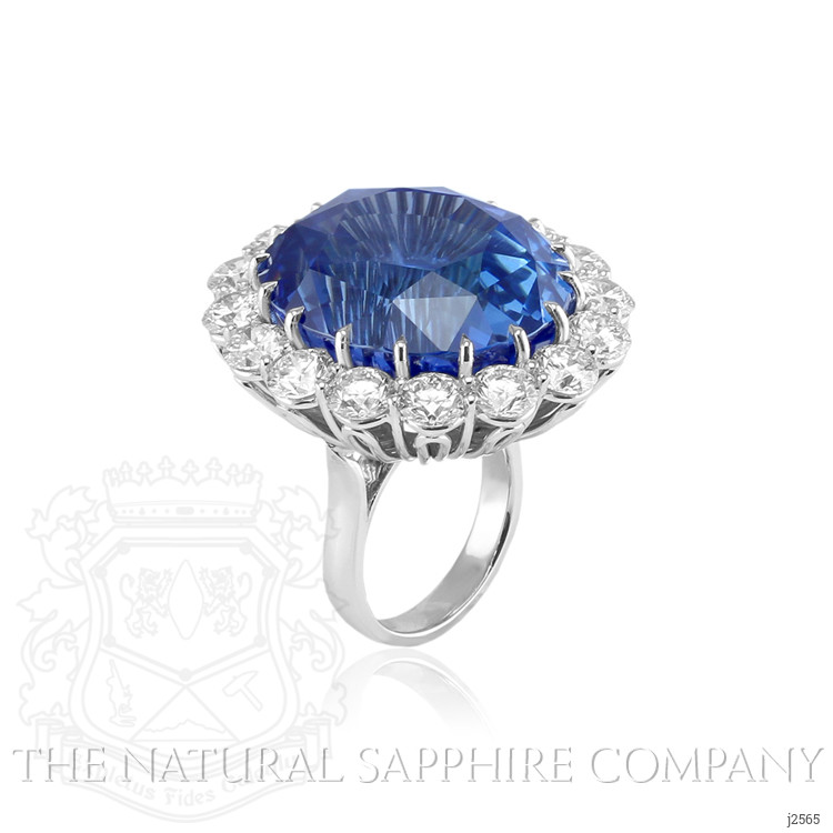 69.35 Ct. Blue Sapphire and Natural Diamond Halo Ring, Platinum 950