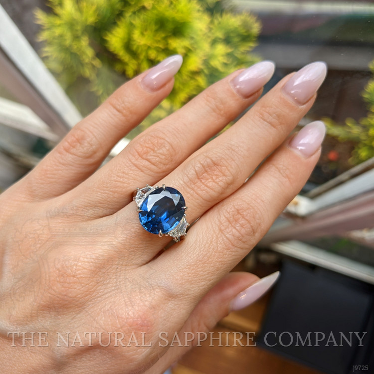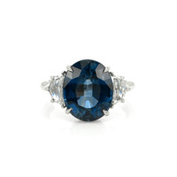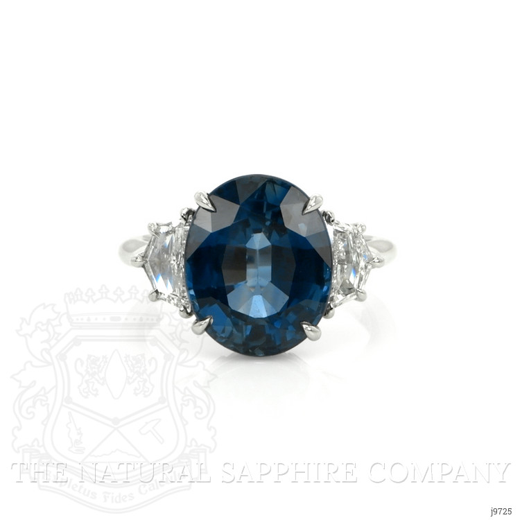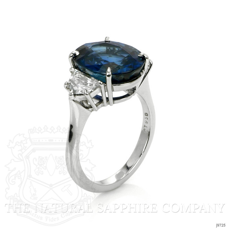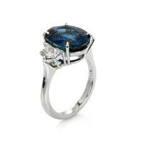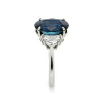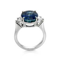 8.22 Ct. Blue Sapphire and Natural Diamond Three Stone Ring, Platinum 950