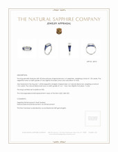 The ring primarily features with 32 blue princess shaped princess cut sapphires, weighing a total of 1.20 carats. The sapphires have a clarity grade of very slightly included, and color saturation of vivid. Also featured in the ring are 1 white baguette (straight) shaped step cut natural diamonds, weighing a total of 1.56 carats. The natural diamonds have a clarity grade of vvs1 - Very Very Slightly Included., F color The ring is entirely set in platinum 950.