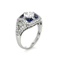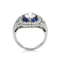 1.43 Ct. Blue Sapphire and Natural Diamond Antique Style Ring, Platinum 950