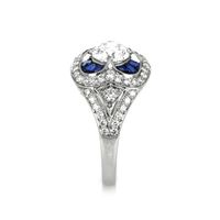 1.43 Ct. Blue Sapphire and Natural Diamond Antique Style Ring, Platinum 950