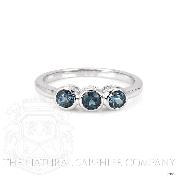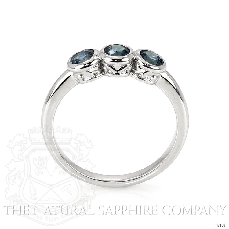 0.72 Ct. Bluish Grey Sapphire Three Stone Ring, 14K White Gold
