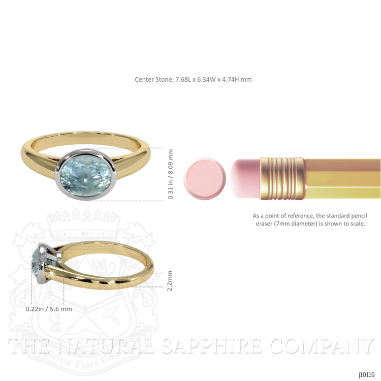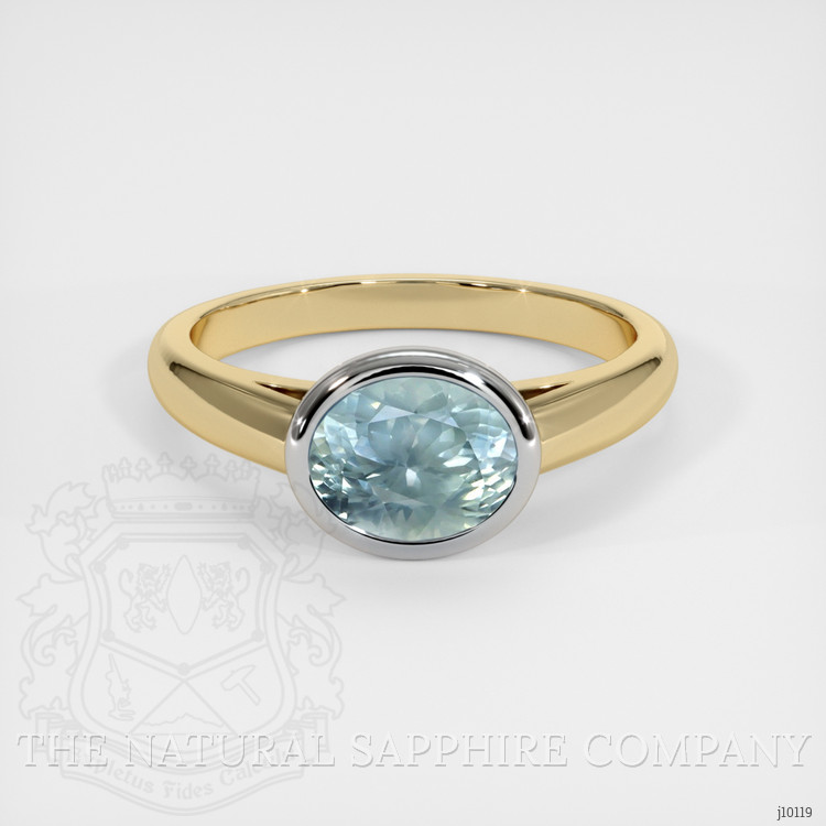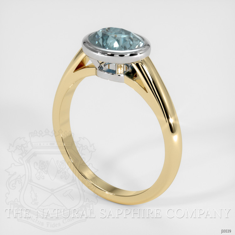 1.74 Ct. Greenish Blue Sapphire Bezel Ring, 14K Yellow & White