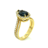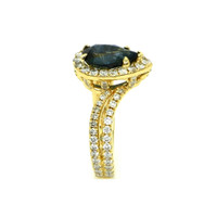 2.04 Ct. Greenish Blue Sapphire and Natural Diamond Pave Ring, 18K Yellow Gold
