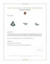 The Natural Sapphire Company is proud to present this extraordinary gem to our discerning clientele. Every sapphire we offer is carefully evaluated to ensure it meets our rigorous standards of quality and beauty. By choosing this bluish green sapphire, you are selecting a gemstone that not only holds intrinsic value due to its rarity and origin but also serves as a testament to fine craftsmanship. This sapphire, with its captivating color and superior attributes, stands as a symbol of elegance and distinction.