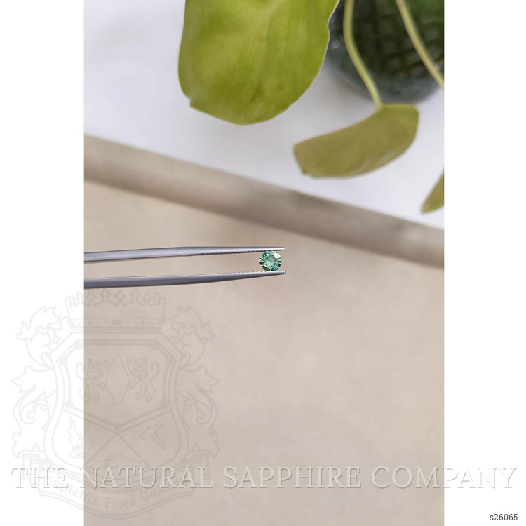 This exquisite 0.38-carat bluish-green sapphire from The Natural Sapphire Company is a testament to timeless elegance and exceptional craftsmanship. Carefully sourced from Madagascar, this gemstone exhibits a perfect round shape with dimensions of 4.53 x 4.53 x 2.55 mm. Its mixed brilliant cut ensures a dazzling display of light and color, captivating from every angle. The sapphire is heat treated, a standard enhancement technique that enriches its medium intense color intensity, ensuring the vibrant bluish-green hue truly shines through.
