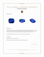 Crafted with dedication and expertise, we honor at The Natural Sapphire Company both nature's innate artistry and humankind’s inherited legacy of beauty. This sapphire encapsulates not just visual pleasure but also a narrative stitched in geological time, human ingenuity, and the beautiful partnership of both worlds in glorifying elegance. In its undisturbed blue lies the enchanting history of faraway lands, crown jewels, and royal allure, inviting not just admiration but connection. With grace, this exquisite gem can serenade any collection both in refinery and mystery, promising a legacy of its own in any setting fortunate enough to embrace its mystical light.