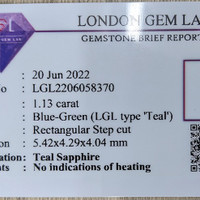 This remarkable gemstone, a 1.13 carat emerald cut sapphire, stands out for its unique combination of size and color. Measuring 5.46 x 4.33 x 4.04 mm, this transparent sapphire exhibits a captivating bluish-green hue. The sapphire's medium intense color intensity adds to its allure, setting it apart from more conventional options. Originating from Ceylon, known today as Sri Lanka, this gem embodies the esteemed legacy associated with its provenance.