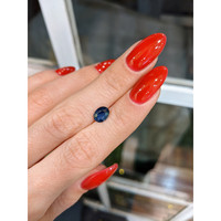 This sapphire features a captivating, transparent blue hue, a dark color intensity that sets it apart from more conventional gemstones, offering a depth of color that is sophisticated and intense. The oval shape, precise dimensions of 7.40 x 5.68 x 3.43 mm, and mixed brilliant cut work harmoniously together to reflect light with an exceptional sparkle that is sure to catch the eye. The gemstone's slightly included clarity grade, evaluated at eye level, ensures that its natural composition is preserved without distracting from its outer beauty, adding to its character and charm. The excellent polish further enhances its allure, providing a smooth, glowing surface that mirrors your every movement.