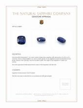 The investment potential of this blue sapphire is multifaceted. Sapphires have long been regarded as a stable and appreciating asset class within the realm of tangible investments. The gemstone's scarcity, driven by its prized characteristics and esteemed origin, aligns with the principles of high demand and limited supply. Over time, gemstones of such high caliber have historically demonstrated potential for notable appreciation in value. This blue sapphire from The Natural Sapphire Company not only promises aesthetic satisfaction and prestige but also offers prospective investors a strategic opportunity for wealth preservation and growth. With its excellent polish augmenting its intrinsic qualities, this sapphire stands as a paragon of luxury as well as a prudent investment decision, ensuring longevity of allure and value.