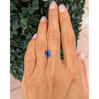 With an emerald cut that reflects whispers of ancient regality and timeless sophistication, this sapphire reveals an intense color intensity that beckons with the depth of the ocean's embrace. Its clarity, rated as very slightly included at eye level, speaks of authenticity, capturing the soul of nature's artistry and the moments when human touch meets mineral majesty. Each reflection crystallizes life’s pirouetting symphony of love and longing, joy and devotion. As your gaze deepens into the mesmerizing depths of this sapphire, it transports you to a world where the heavens kiss the horizon at twilight, casting a glow that immortalizes romances and seals promises made under moonlit skies.
