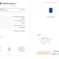 Our sapphire's breathtaking hue has been meticulously curated by nature, its color an intense shade of blue, reminiscent of the deepest ocean waves. Displaying an elegant cushion shape, it is a masterpiece crafted by the earth over millennia, with a mixed brilliant cut that captures and plays with light in a mesmerizing dance. Its clarity is eye clean, revealing no imperfections to the naked eye, a testament to the purity of this exceptional stone.