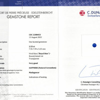 Introducing an exquisite jewel from The Natural Sapphire Company, a captivating blue sapphire that embodies elegance and timeless beauty. This 2.53 carat gemstone, verified by C.Dunaigre certification, stands as a testament to both superior craftsmanship and natural wonder. Its precise round shape is meticulously crafted with a mixed brilliant cut, allowing it to capture and reflect light with breathtaking brilliance. The sapphire measures 8.01 x 7.95 x 5.27 mm, rendering a presence that is both sophisticated and commanding. Originating from the renowned gemstone-rich lands of Madagascar, this sapphire carries with it a distinct heritage of quality and rarity.