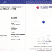 Discover the timeless allure and enchanting legacy of our stunning Vivid Blue sapphire, a gemstone steeped in the rich history of the Ceylon mines of Sri Lanka. This exquisite 3.02 carat gemstone is more than a jewel; it is a testament to the artistry of nature. With dimensions of 9.33 x 7.36 x 4.91 mm, this oval-shaped sapphire captures an unparalleled depth of color and brilliance. Certified by C.Dunaigre, it holds an esteemed place within the world of fine gemstones. Its mixed brilliant cut enhances its innate charm, allowing it to dazzle with every flicker of light. The vivid color intensity draws you in, while its excellent polish reflects the meticulous craftsmanship involved in shaping this masterpiece.