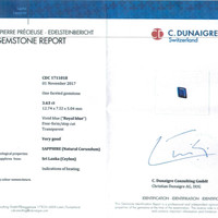In the realm of extraordinary gemstones, the C.Dunaigre certified Vivid Blue "Royal Blue" sapphire from The Natural Sapphire Company stands as an unparalleled testament to luxury and refinement. This exquisite gem, with its remarkable weight of 3.63 carats and perfect dimensions of 12.71 by 9.81 by 5.06 mm, exudes an aura of opulence that few treasures can match. Handcrafted into a sophisticated fancy shape, this sapphire captures the essence of elegance with every facet meticulously arranged in a flawless step cut. The result is a kaleidoscope of light reflections that dance across its pristine surface, setting it apart from common counterparts and elevating it to the pinnacle of desirability.