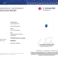 Discover the unparalleled allure of possession with our magnificent 3.75 carat radiant shape blue sapphire, certified by C. Dunaigre. This exquisite gemstone is not merely a jewel but a piece of art curated by the timeless craftsmanship for which The Natural Sapphire Company is renowned. Fashioned in a brilliant mixed cut, this sapphire unveils a mesmerizing dance of light and color that can only be described as an azure dream. Its intense color intensity captures the splendor and mystery of the ocean depths, set in a translucent form that offers a direct window into the soul of this spectacular gemstone.