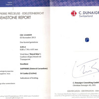 Throughout its transformation, the sapphire was carefully examined and certified. Under the watchful and expert eyes of prestigious gemologists, this blue sapphire earned its rightful place among the finest of gemstones. Certified by C. Dunaigre, renowned for upholding the highest standards, this gem carried with it an assurance of purity and excellence. Its intense color, denoting more than just beauty, spoke of a legacy and future as dazzling as its cerulean depths. Bearing the hallmark of Sri Lankan origin, this gem's lineage was a tapestry of nature's wonder and human dedication, the result refined into a masterpiece.