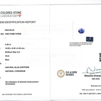 The 4.40 carat oval-shaped blue sapphire, certified by the Gemological Institute of America, exemplifies the epitome of gemstone excellence. With dimensions of 10.00 x 8.30 x 6.45 mm, this gemstone owes its exceptional allure to a combination of precise cutting and inherent qualities. Its mixed brilliant cut is designed to harness the maximum amount of light, reflecting it in a dazzling play of brilliance that captivates the observer. The clarity grade of very slightly included, evaluated at eye level, ensures minimal internal imperfections, allowing this Ceylon sapphire's innate beauty to shine through without obstruction.