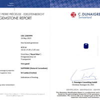 The exquisite blue sapphire offered here, certified by C. Dunaigre, stands as a true testament to nature's grandeur. With a significant carat weight of 4.51 and crafted into an elegant emerald cut, this sapphire presents dimensions of 10.34 x 9.25 x 5.06 mm. Its clarity grade of very slightly included ensures that any inclusions are minimal and do not detract from the overall allure. This sapphire boasts vivid color intensity, signifying its exceptional quality and rarity. The natural brilliance and hue of this gem is further accentuated by its excellent polish, ensuring that the sapphire achieves a radiant shine under various lighting conditions. The origin of this gemstone is Ceylon, now known as Sri Lanka, a region celebrated for producing some of the world's most stunning sapphires. This adds a prestigious pedigree to the gem's provenance, highlighting not only its inherent beauty but also its rich historical significance.