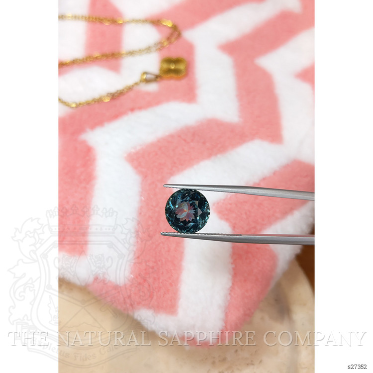 With an exquisite mixed brilliant cut engineered to catch the light and a polish so fine it rivals the reflection in a calm estuary, this gemstone conjures the vision of strolling by the rippling streams of Montana. The round shape, partnered with flawless workmanship, serves to amplify its overall brilliance, allowing the intense colors to dance and play, capturing hearts in their swirling symphony. Held in hand or adorning a cherished piece, this sapphire promises to shine with excellent distinction, akin to stars on a pristine night, set against the velvet Montana sky.