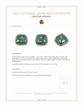In the opulent world of gemstones where the earth's finest treasures are revered and desired a singular standout shapes the essence of sophistication and luxury. Presenting the impeccable allure of the 15.22 carat cushion shape bluish green sapphire a marvel of nature and artistry masterfully curated by The Natural Sapphire Company. Its dimensions at 12.49 x 12.24 x 9.40 mm serve as a testament to its magnificent presence. Yet, it is the audacious sugar loaf cut that captivates the beholder weaving an unspoken tale of elegance that resonates with the core of refined taste.