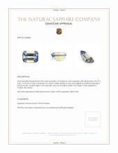 As we delve into the technical attributes, the clarity grade of this sapphire, evaluated as very very slightly included at eye level, signifies the extremely high purity of the gem. Flaws or inclusions visible to the naked eye are almost nonexistent, testifying to the exquisite quality of this sapphire. When compared to other gemstones in this category, the emerald cut design serves to maximize the reflective qualities of the stone, presenting each subtle gradient of color to the observer with captivating clarity and precision. This expert cut optimizes light entrance and reflection within the gemstone, allowing for a breathtaking interplay between light and color, a hallmark of superior sapphires.