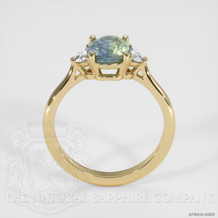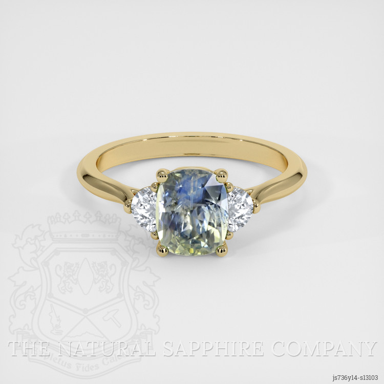 Three Stone Bi Color Sapphire Ring 1.84 Ct., 14K Yellow Gold