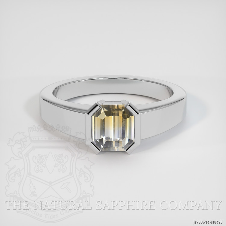 Discover the epitome of luxury and elegance with this exquisite men's ring, a true masterpiece by The Natural Sapphire Company. At its heart lies a stunning 2.24 carat bi-color sapphire, artfully cut into an emerald shape. Its dimensions of 6.50 x 6.16 x 5.00 mm exude a subtle charm, reflecting the richness of its Ceylon origin. The sapphire's enchanting transparency and medium color saturation offer a mesmerizing play of colors, reminiscent of the serene landscapes of its birthplace, Sri Lanka.