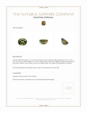 From the ancient alluvial terraces of Australia to the refined hands of our master setters, this ring tells the story of a sapphire that spent millennia forming before it was revealed to the world, The Natural Sapphire Company guided its journey from the mine to the bench, selecting a transparent 1.14 carat oval bi color sapphire measuring 6.76 x 5.01 x 3.67 mm with a mixed brilliant cut, the gem displays intense color saturation that shifts between olive green and golden flashes, the stone received careful heat treatment to deepen its tone and an excellent polish to maximize brilliance, with a clarity graded as very very slightly included at eye level the sapphire holds internal character without interrupting its lively sparkle, our cutters preserved the mixed brilliant facet pattern to balance scintillation and color play, and the result is a stone that feels both wild in origin and intimate in presence.