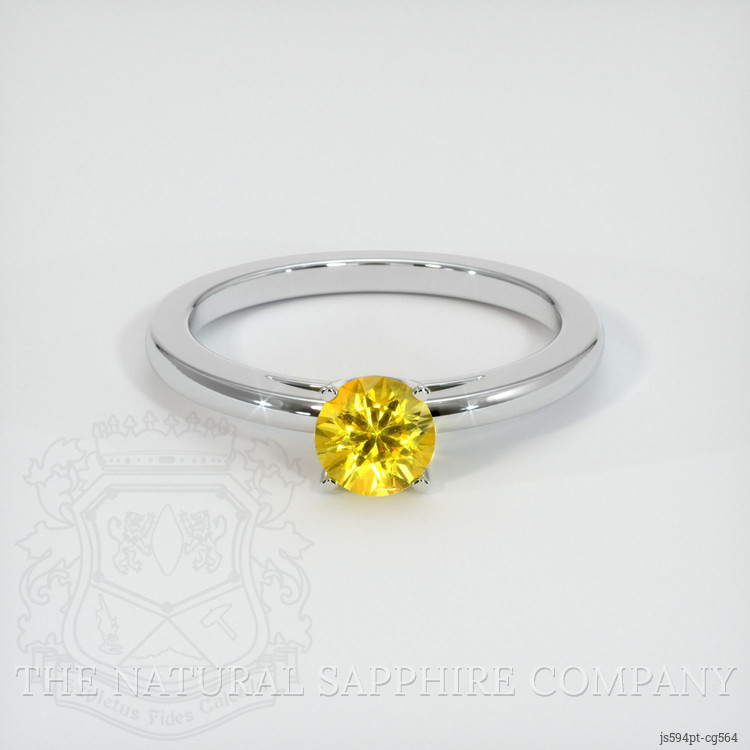 The ring features a beautiful, transparent 0.91 carat round shape bi color sapphire with the dimensions of 5.66 x 5.57 x 4.05 mm and a brilliant cut. It has a clarity grade of very slightly included (evaluated at eye level), intense color saturation, and an excellent polish. The origin of this sapphire is Ceylon (Sri Lanka).