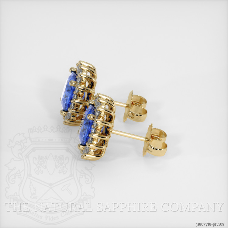 Halo Blue Sapphire Earring 1.79 Ct.Tw.Total Carat Weight, 18K Yellow Gold