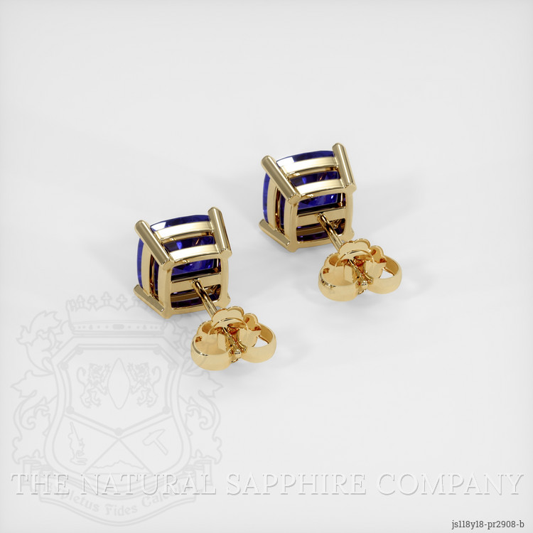 Studs Blue Sapphire Earring 1.90 Ct.Tw.Total Carat Weight, 18K Yellow Gold