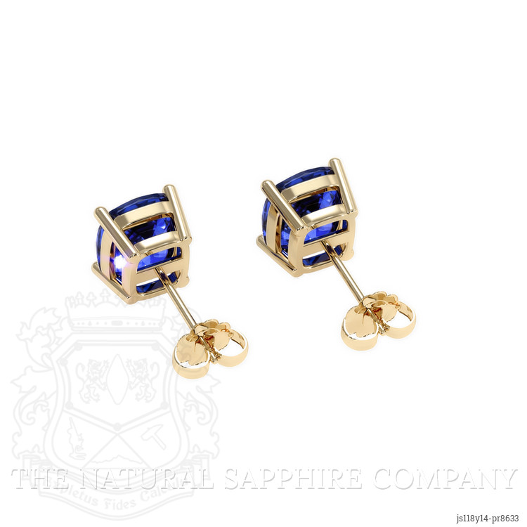 Studs Blue Sapphire Earring 2.89 Ct.Tw.Total Carat Weight, 14K Yellow Gold