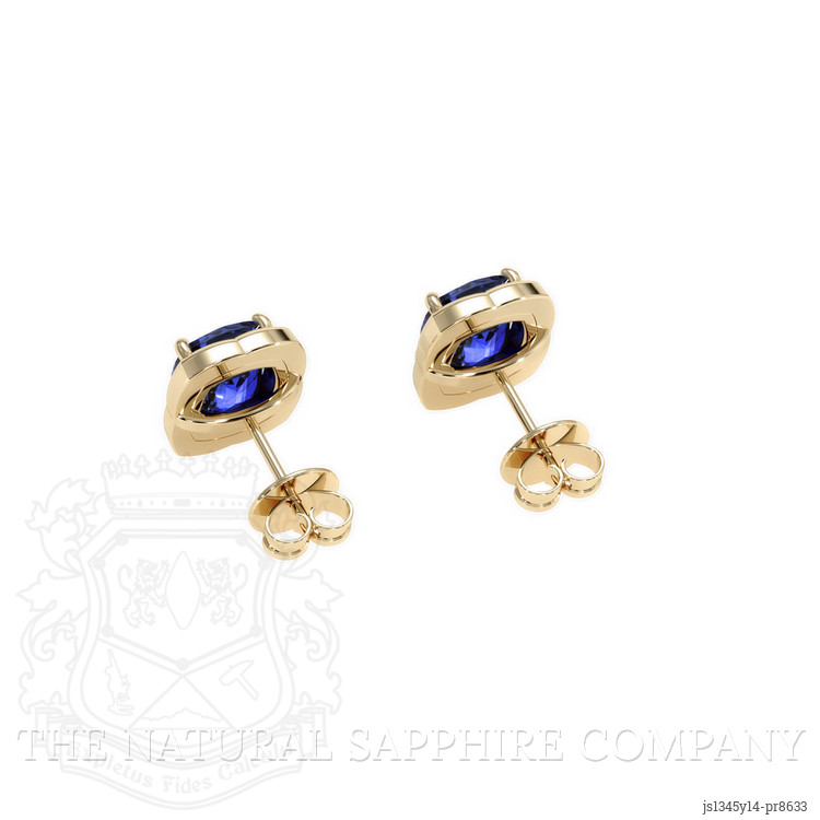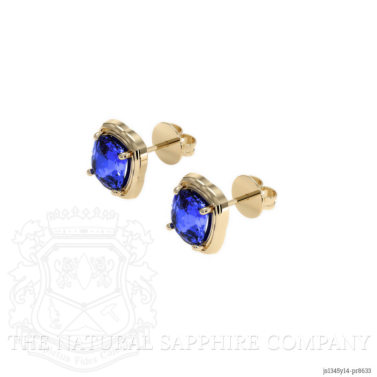 Studs Blue Sapphire Earring 2.89 Ct.Tw.Total Carat Weight, 14K Yellow Gold