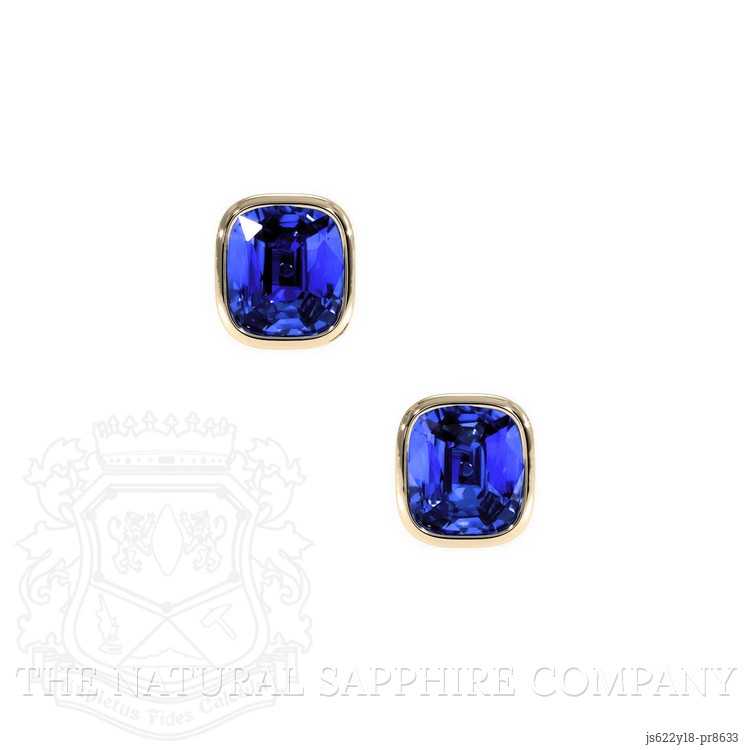 In the soft glow of dawn, where the first light kisses the sky with whispers of wonder, lie treasures born of dreams. The Natural Sapphire Company invites you to immerse yourself in the enchanting embrace of Ceylon's finest blues, captured in our exquisite earrings. Crafted with precision, each sapphire holds a universe of delicate allure, measuring a timeless 6.84 by 6.04 by 3.61 millimeters. These cushion-shaped marvels, blessed with a mixed brilliant cut, dance with light in a symphony of subtle elegance.