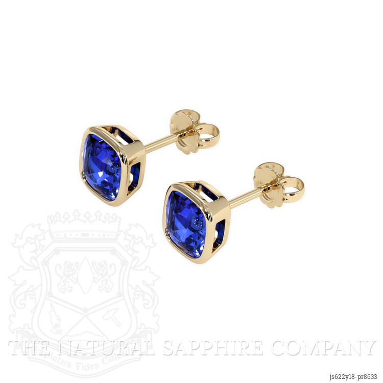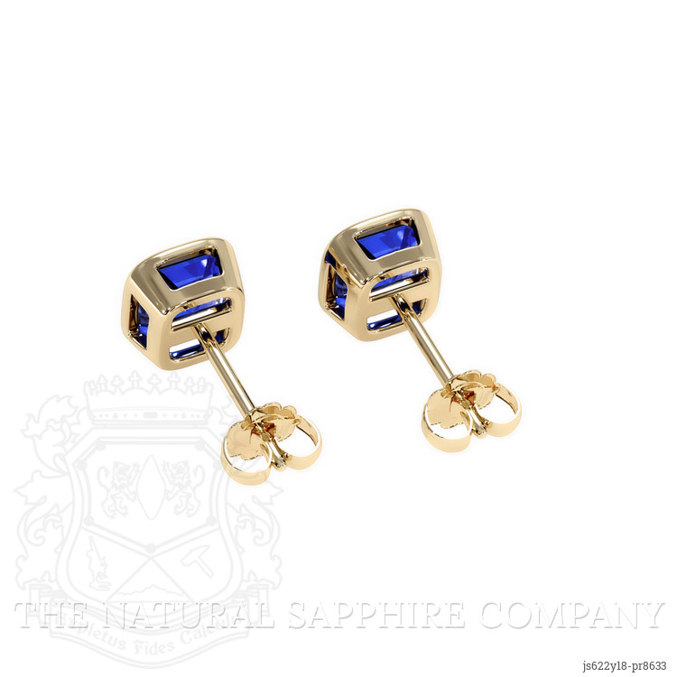 Studs Blue Sapphire Earring 2.89 Ct.Tw.Total Carat Weight, 18K Yellow Gold