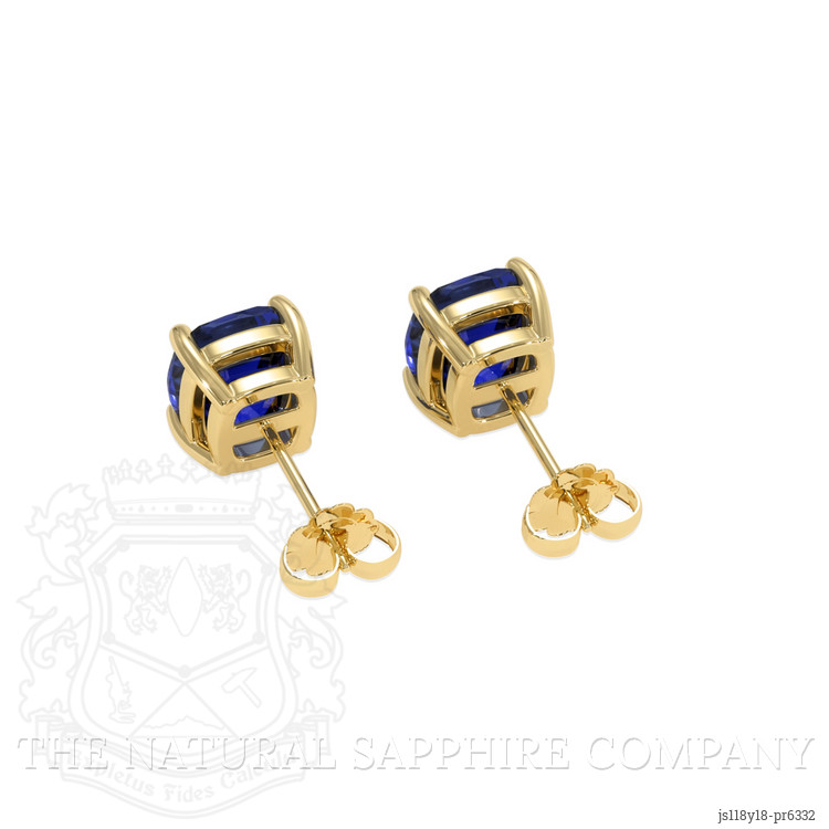 Studs Blue Sapphire Earring 3.07 Ct.Tw.Total Carat Weight, 18K Yellow Gold