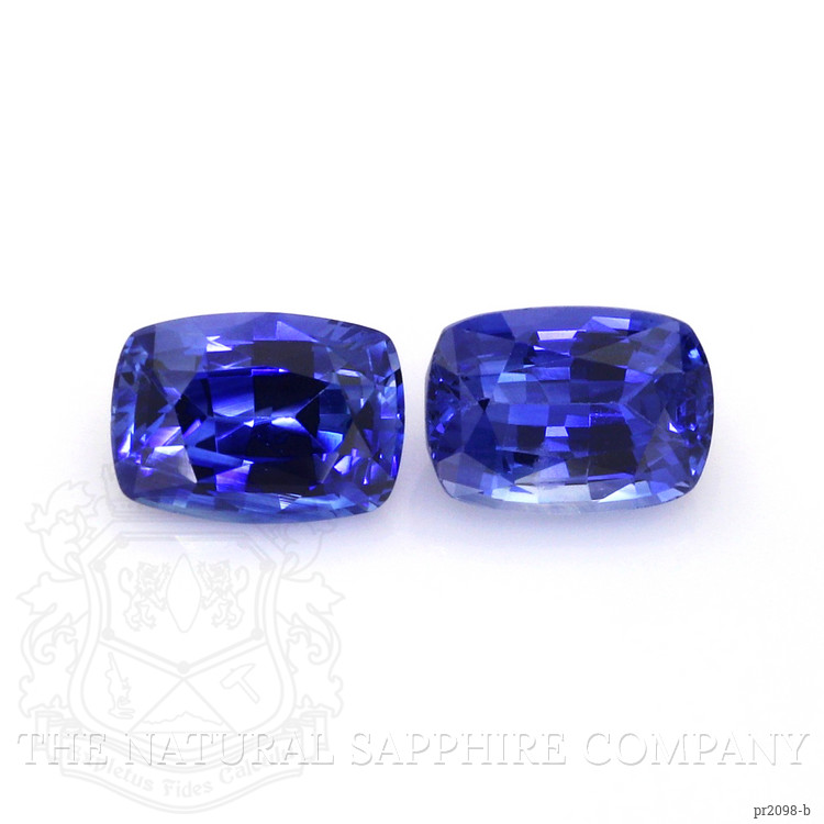 The earrings feature a beautiful, transparent pair of sapphires that are 3.10 total carat weight. They are cushion shape blue sapphires, with the dimensions of 7.60 x 5.50 x 4.01 mm and are mixed brilliant cut, have a clarity grade of very slightly included (evaluated at eye level), vivid color saturation, and an excellent polish. The origin of this pair of sapphires is Madagascar.