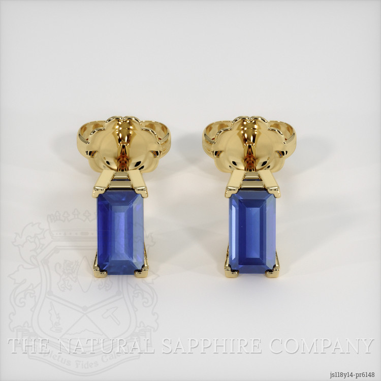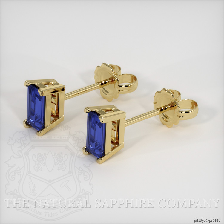 Studs Blue Sapphire Earring 0.87 Ct.Tw.Total Carat Weight, 14K Yellow Gold