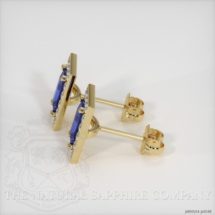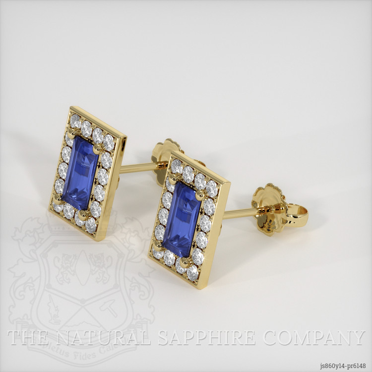 Studs Blue Sapphire Earring 0.87 Ct.Tw.Total Carat Weight, 14K Yellow Gold