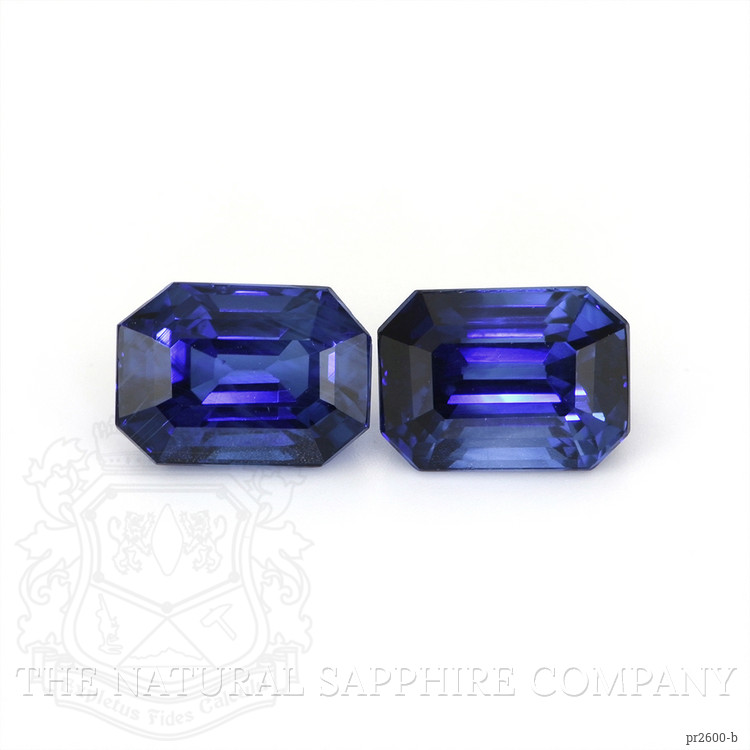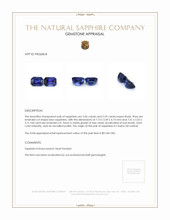 The earrings feature a beautiful, transparent pair of sapphires that are 4.35 total carat weight. They are emerald cut shape blue sapphires, with the dimensions of 7.61 x 5.52 x 5.21 mm and are emerald cut, have a clarity grade of eye clean (evaluated at eye level), vivid color saturation, and an excellent polish. The origin of this pair of sapphires is Ceylon (Sri Lanka).