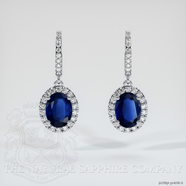Pave Blue Sapphire Earring 2.57 Ct.Tw.Total Carat Weight, Platinum 950