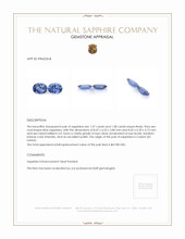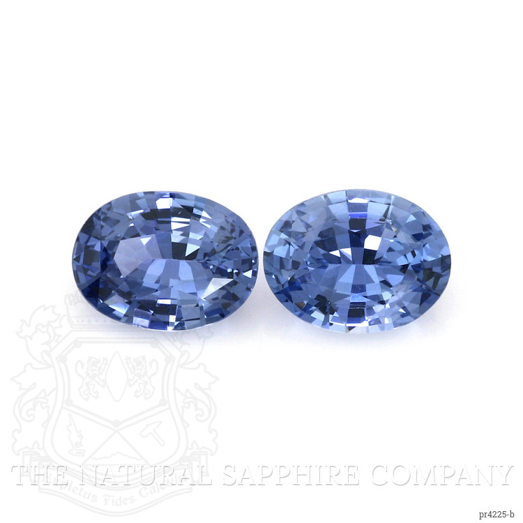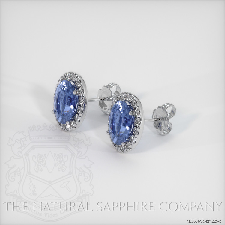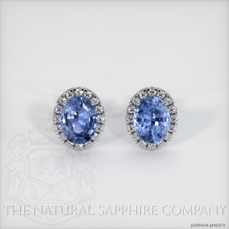 The earrings feature a beautiful, transparent pair of sapphires that are 3.15 total carat weight. They are oval shape blue sapphires, with the dimensions of 8.45 x 6.39 x 3.75 mm and are mixed brilliant cut, have a clarity grade of eye clean (evaluated at eye level), medium intense color saturation, and an excellent polish. The origin of this pair of sapphires is Ceylon (Sri Lanka).